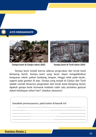 Gempa bumi terjadi karena adanya pergerakan dari kerak bumi