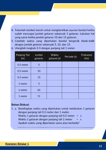 5. Catatlah waktu yang diperlukan bandul bergerak bolak-balik