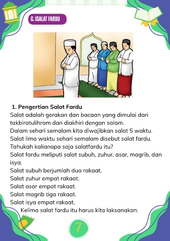 Salat fardu meliputi salat subuh, zuhur, asar, magrib, dan
