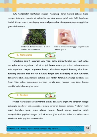 Contoh lainnya seperti benalu yang menempel pada pohon, dan nyamuk yang menggigit ba-