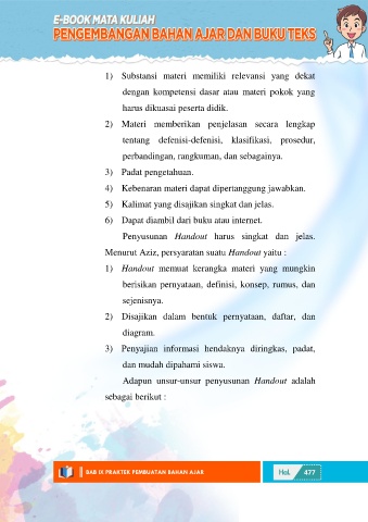 Menurut Aziz, persyaratan suatu Handout yaitu :