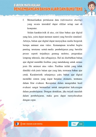 cetak. Karakteristik selanjutnya yaitu bahan ajar digital