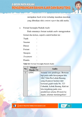 Tabel 14. Format/ Kerangka Naskah Audio
