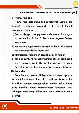 c) Jika tidak sesuai dengan spesifikasi ganti flasher.
