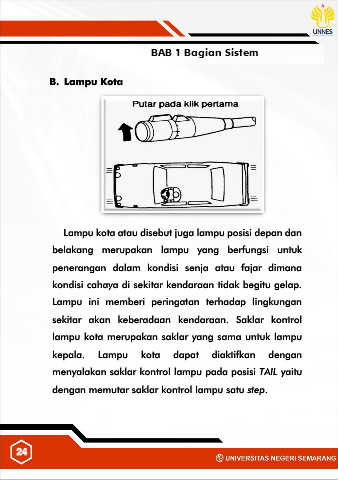menyalakan saklar kontrol lampu pada posisi TAIL yaitu
