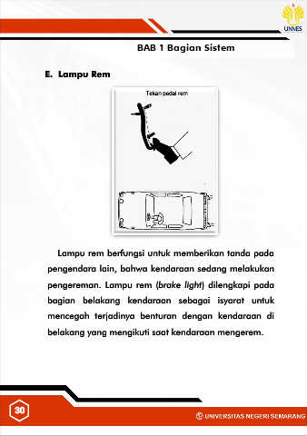 pengereman. Lampu rem (brake light) dilengkapi pada