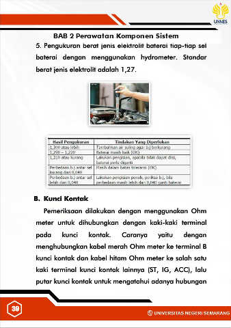 baterai dengan menggunakan hydrometer. Standar