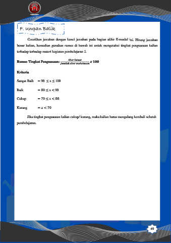 Jika tingkat penguasaan kalian cukup/ kurang, maka kalian harus mengulang kembali seluruh