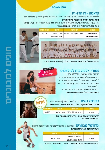 חוגים למבוגרים ההרשמה במחלקת התרבות והספורט במנהלת || החוג יפתח ב3.9.2025-