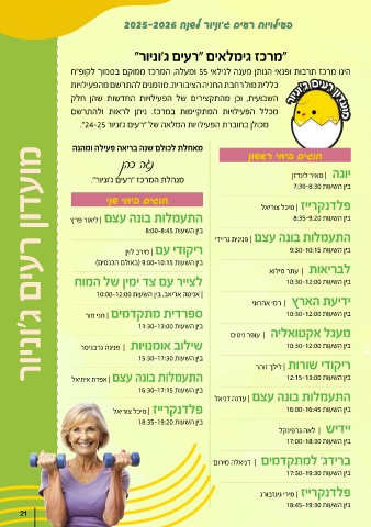 בין השעות ( 9:00-10:15באולם הכנסים) התעמלות בונה עצם | פנינית גריידי