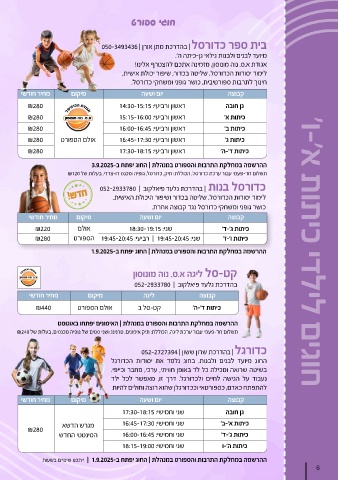 ₪280 שני | 19:45-20:45 :רביעי 19:45-20:45 :הספורט כיתות ו׳-ז׳