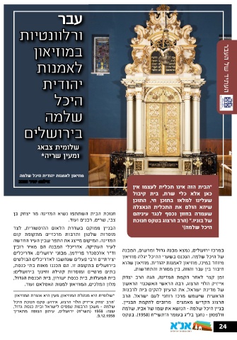 וד"ר אלכסנדר פרידמן ,מבוני ירושלים .אדריכלים של היכל שלמה .הנכנס בשערי ההיכל יגלה מוזיאון