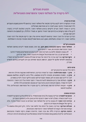 לגבי כל ליקוי (אם נמצא או לא) ,מספר העובדים להם נמצא הליקוי והפניה לפרק המפורט.