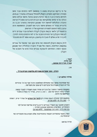 בהתאם לכך ולאור בקשת הקבלן לקבלת תשלום עבור עובדים זרים
