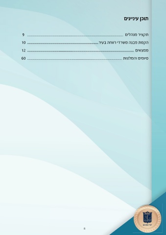 תוכן עיניינים תקציר מנהלי ם 9 הקמת מבנה משרדי רווחה בעיר 10 ממצאים 12 סיומים והמלצות 60 8