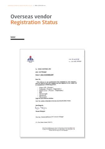 OVERSEAS VENDOR REGISTRATION STATUS l WISE CONTROL.Inc. Overseas vendor Registration Status NIGC