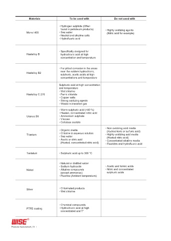 Monel 400 ◦ Sea water (Nitric acid for example)