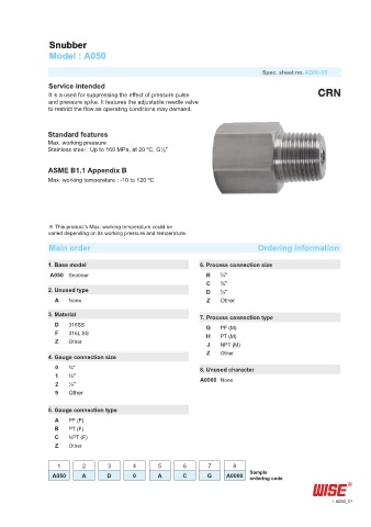 1. Base model 6. Process connection size