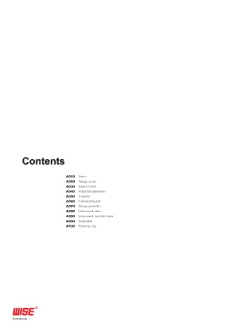 Contents A010 Union A020 Gauge union A030 Syphon tube A040 Pulsation dampener A050 Snubber A060 Condensing pot A070 Gauge protector A080 Instrument valve A080 Instrument manifold valve A090 Sunshade A100 Flushing ring Accessories