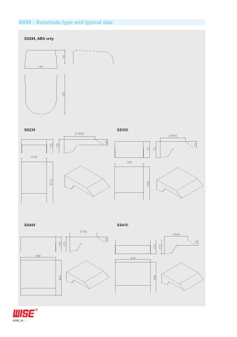 A090 : Sunshade type and typical size SS280, ABS only SS230 SS300 SS400 SS410 A090_04