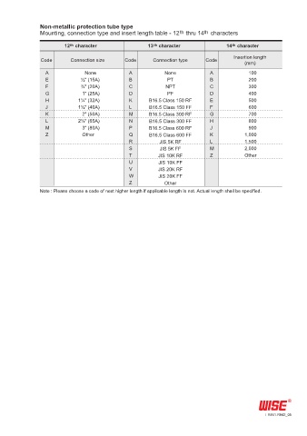 Mounting, connection type and insert length table - 12 thru 14 characters