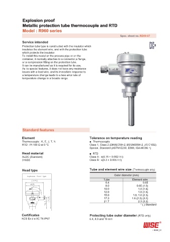 Certificates Protecting tube outer diameter (RTD only)