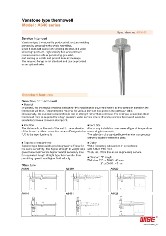 thermowell will face. Recommended material for various services are given in the corrosion table.