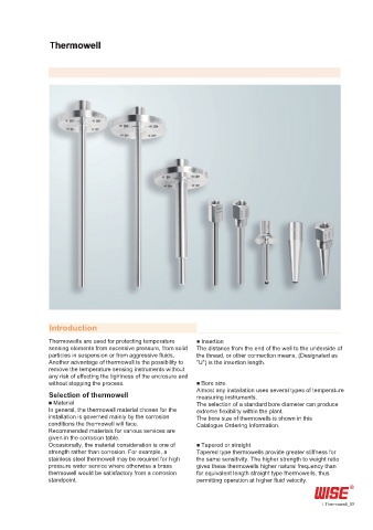 installation is governed mainly by the corrosion The bore size of thermowells is shown in this