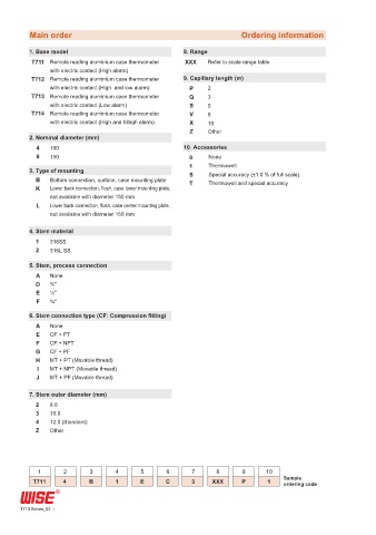 B Bottom connection, surface, case mounting plate T Thermowell and special accuracy