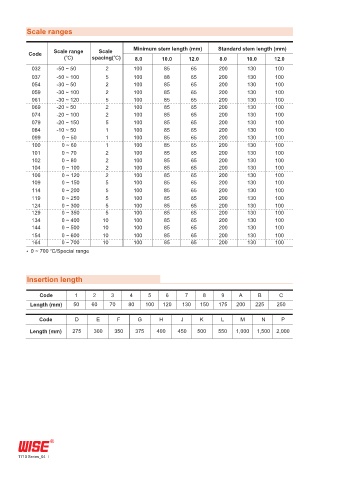 Code Scale range Scale Minimum stem length (mm) Standard stem length (mm)