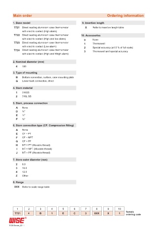 Main order Ordering information