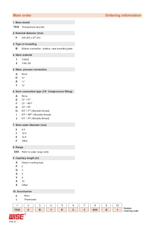 Main order Ordering information
