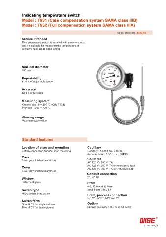Two SPDT for dual setpoint Special accuracy : ±1.0 % of full scale