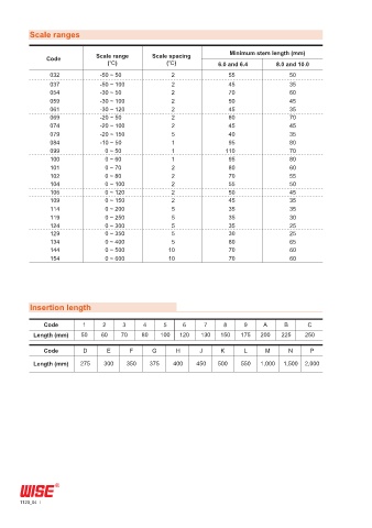 Code Scale range Scale spacing Minimum stem length (mm)