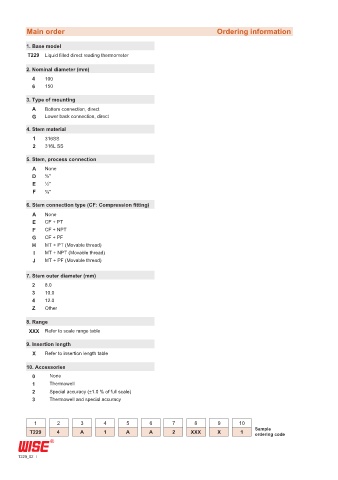 Main order Ordering information