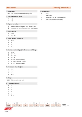 Main order Ordering information