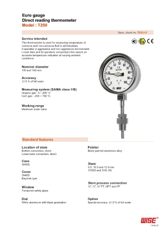 White aluminium with black graduation Special accuracy, ±1.0 % of full scale