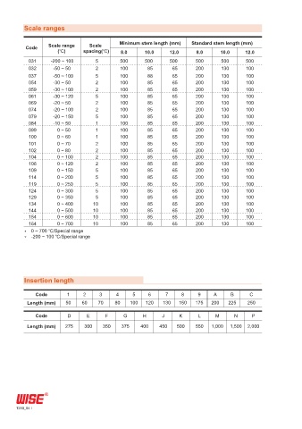 Code Scale range Scale Minimum stem length (mm) Standard stem length (mm)