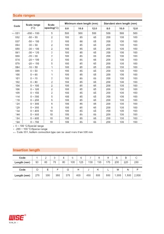 Code Scale range Scale Minimum stem length (mm) Standard stem length (mm)