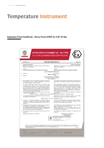 établi en accord avec le référentiel de certification ATEX du LCIE. The LCIE’s liability applies only on the French text. is document may only be reproduced in