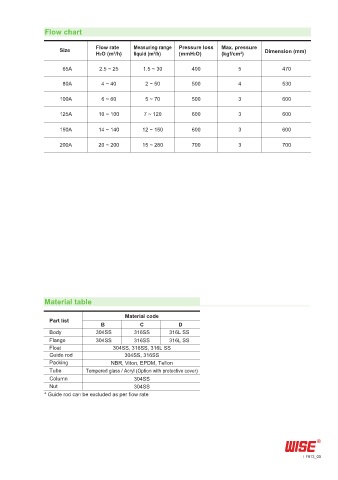 Size Flow rate Measuring range Pressure loss Max. pressure Dimension (mm)