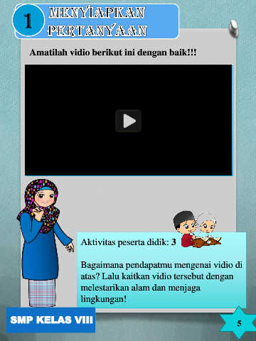 1 Amatilah vidio berikut ini dengan baik!!! Aktivitas peserta didik: 3 Bagaimana pendapatmu mengenai vidio di atas? Lalu kaitkan vidio tersebut dengan melestarikan alam dan menjaga lingkungan! SMP KELAS VIII 5
