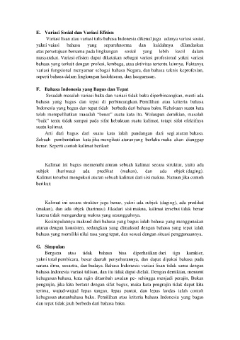 Sesudah masalah variasi baku dan variasi tidak baku diperbincangkan, mesti ada