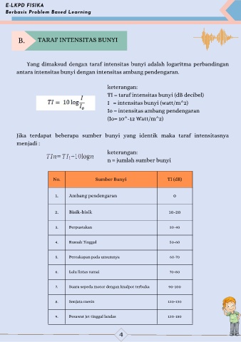 antara intensitas bunyi dengan intensitas ambang pendengaran.