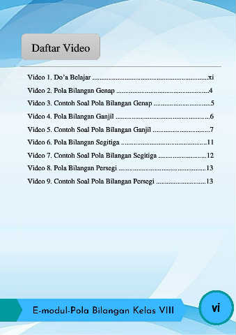 Video 9. Contoh Soal Pola Bilangan Persegi ............................13