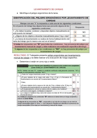 RESULTADO: El Trabajador presenta peligro ergonómico por levantamiento