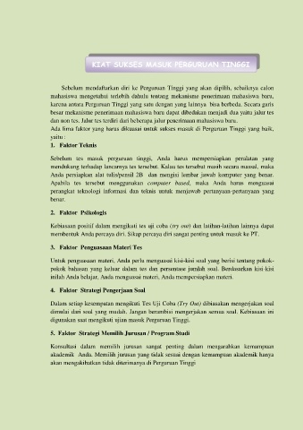 KIAT SUKSES MASUK PERGURUAN TINGGI