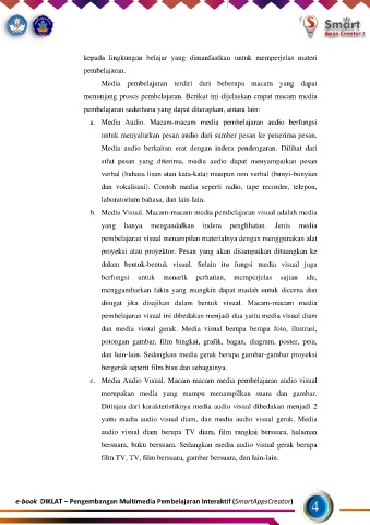 menunjang proses pembelajaran. Berikut ini dijelaskan empat macam media