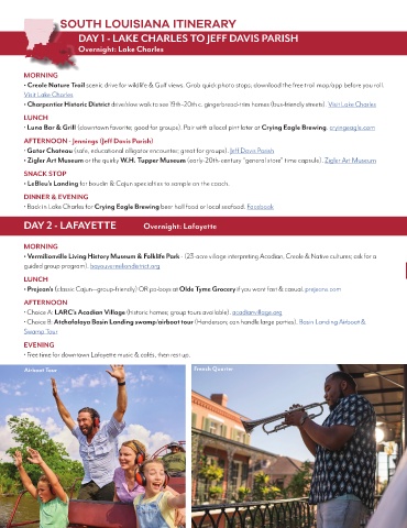• LeBleu’s Landing for boudin & Cajun specialties to sample on the coach.