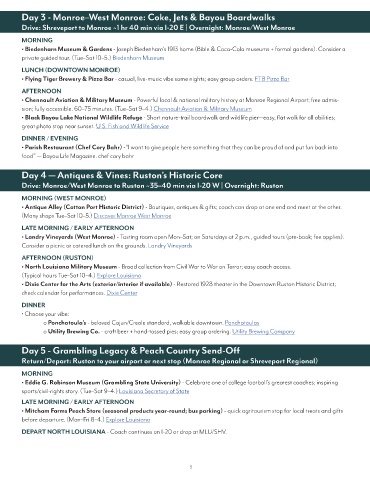 Drive: Shreveport to Monroe ~1 hr 40 min via I-20 E | Overnight: Monroe/West Monroe